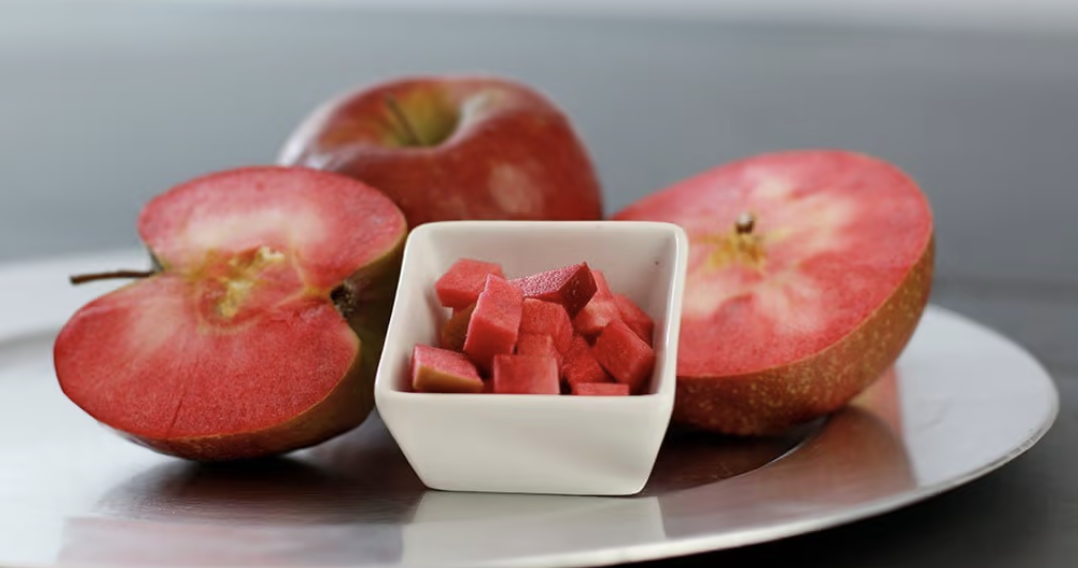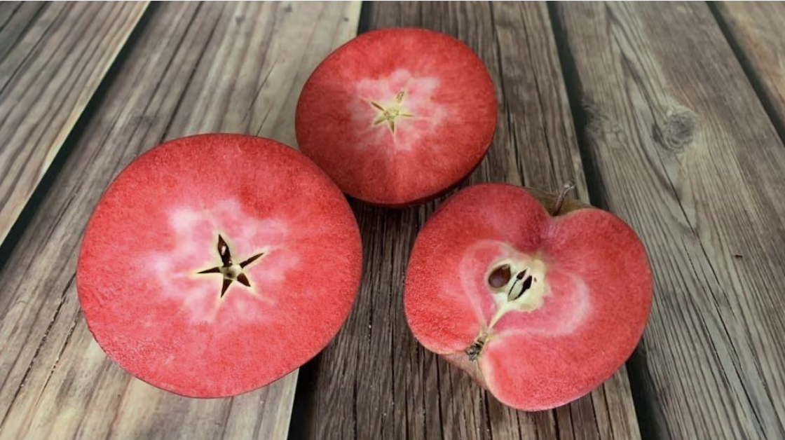 Яблука з червоною серединкою новий тренд у садівництві, але зовнішня привабливість не єдина перевага цих фруктів. Яблука корисні різноманітними властивостями. Одним із факторів, що сприяють цінності для здоров'я, є вміст червоних пігментів антоціанів. У червониом'ясих яблуках не тільки шкірка плодів містить такі сполуки, але і вся плодова м'якоть. Порівняймо зі звичайними в червоном'ясих яблуках міститься величезна кількість антоціанів та антиоксидантів, які є корисними для здоров'я людини, послабляючи певні шкідливі реакції в клітинах, які можуть призвести до раку.